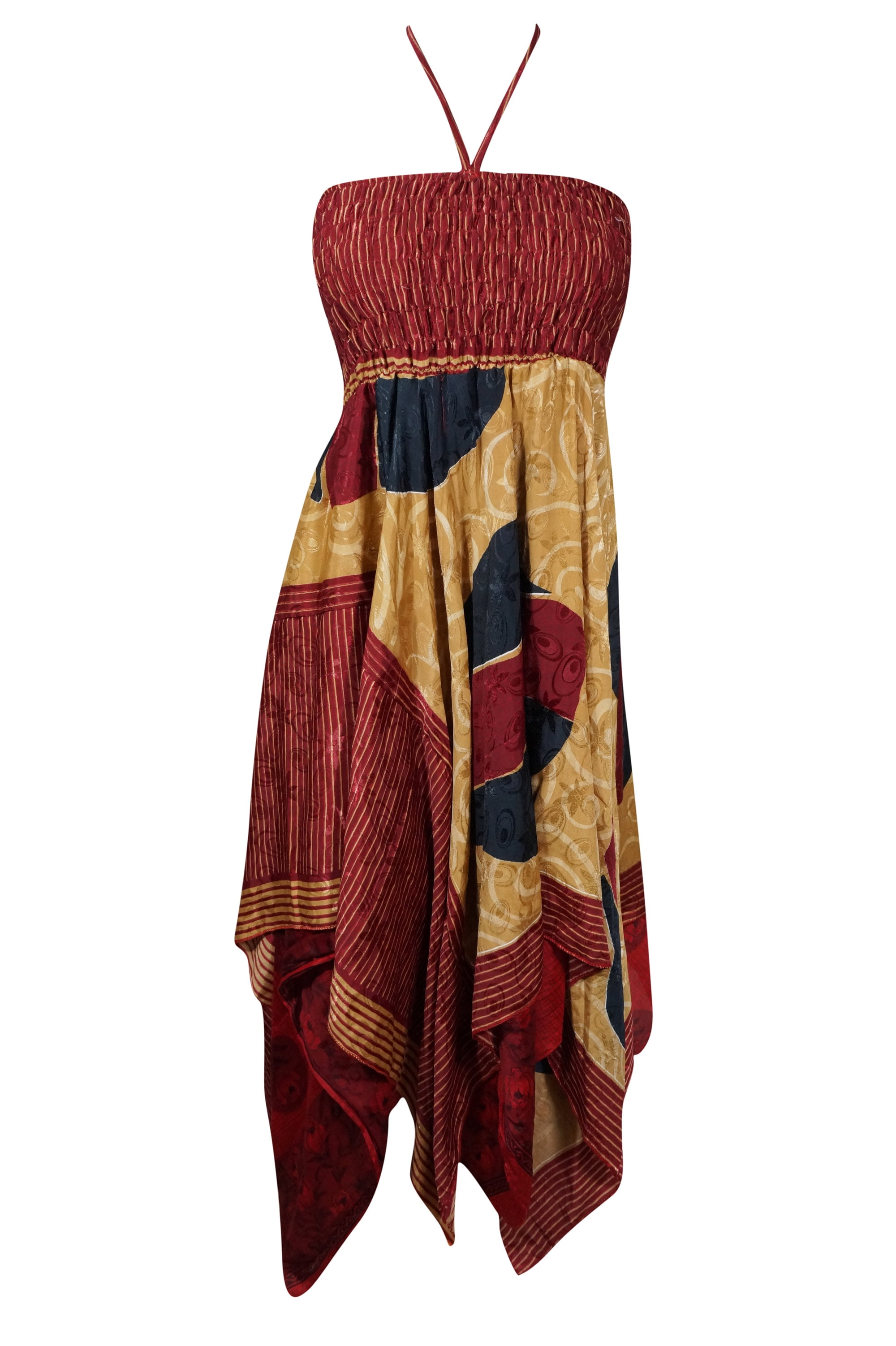 Womens Boho Sundress Halter Dresses Purple Beige Summer Dress Printed Handkerchief Hem Upcycled Silk Sari Beach Halter Dress S M Walmart Com